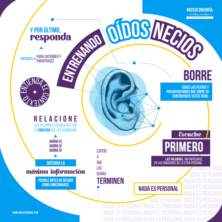 De esta manera podrá entender mejor el contexto de la situación y sin haberse enganchado con las emociones que se estaban proponiendo. Una persona enganchada con una emoción –independiente de si esta es positiva o negativa– inmediatamente se ensordece. Por eso insisto en no tomarse nada de manera personal.