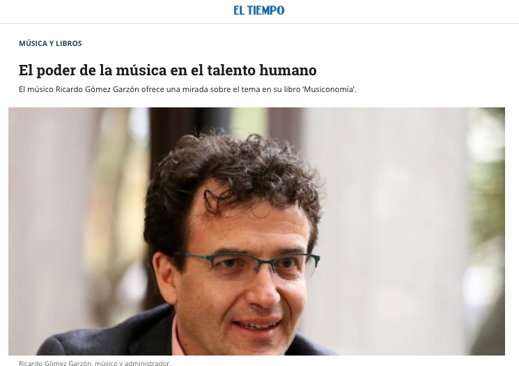 El periodista Carlos Restrepo, redactor de la sección CULTURA del diario EL TIEMPO, hizo una muy descriptiva reseña sobre el libro MUSICONOMIA.